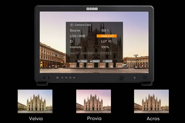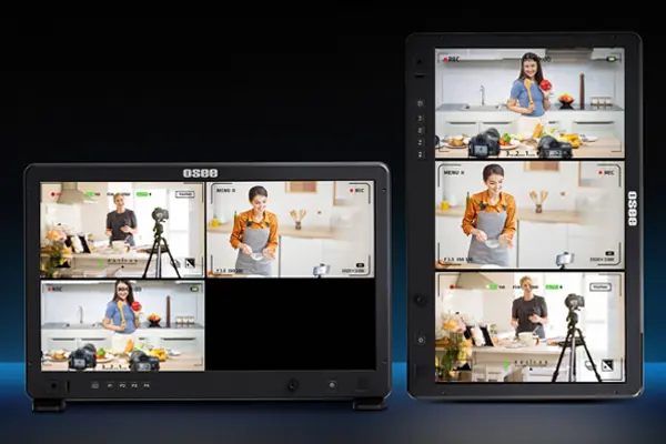 OSEE MEGA 22S4は、水平・垂直の両表示に対応した21.5インチのマルチビュープロダクションモニターです。1500cd/㎡の高輝度IPSパネルと10bitカラーにより、DCI 4K30までの映像を鮮明に表示し、HDRや3D LUTにも対応。最大10個のカスタムLUT保存やフォーカスピーキング、波形、ベクトルスコープ等多彩なモニタリング機能を備え、アナモフィックのデスクイーズやタイムコード表示も可能です。HDMI入力×3(最大4K60)と3G-SDI入力×3(最大1080p60)を装備し、縦表示ではSNS向け映像をフルサイズで確認できます。