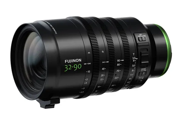 焦点距離32-90mm(35mm判換算:25-71mm相当)の準広角から標準域をカバーする電動パワーズームレンズ。
