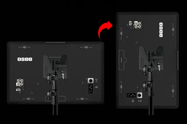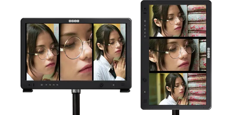 OSEE MEGA 22S4は、水平・垂直の両表示に対応した21.5インチのマルチビュープロダクションモニターです。1500cd/㎡の高輝度IPSパネルと10bitカラーにより、DCI 4K30までの映像を鮮明に表示し、HDRや3D LUTにも対応。最大10個のカスタムLUT保存やフォーカスピーキング、波形、ベクトルスコープ等多彩なモニタリング機能を備え、アナモフィックのデスクイーズやタイムコード表示も可能です。HDMI入力×3(最大4K60)と3G-SDI入力×3(最大1080p60)を装備し、縦表示ではSNS向け映像をフルサイズで確認できます。