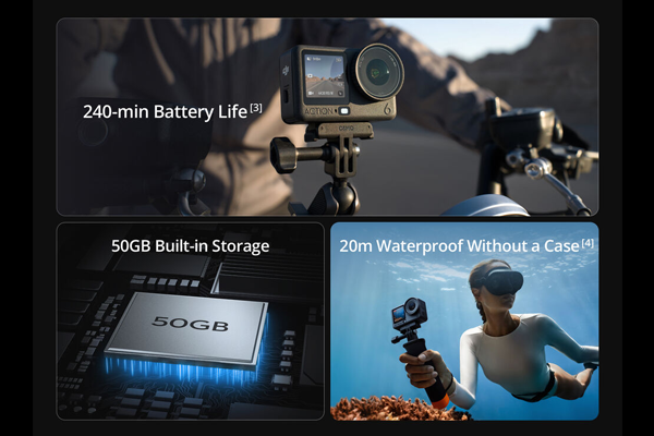 低温にも耐えるよう設計、-20°~45°Cの環境で動作します。(公称)Osmo 360、Action5で使用できます。