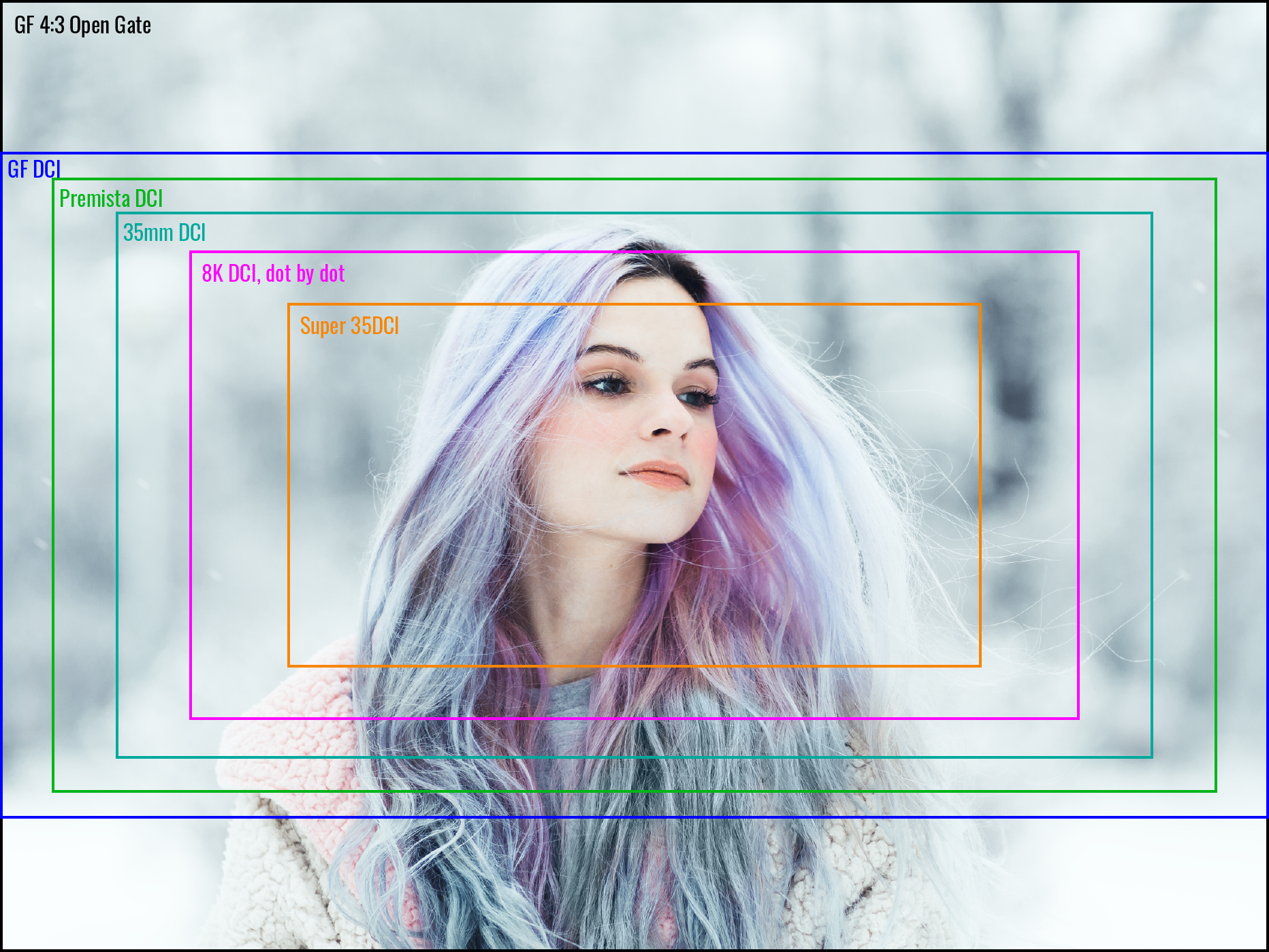 ラージフォーマットセンサーの広大な撮像面を余すことなく活用できる4:3の「Open Gate」撮影に対応。さらにFUJINON GFレンズやPremistaレンズはもちろん、一般的な35mm対応のPLレンズでも8K/4K DCIでの撮影が可能。加えて、アナモフィックレンズやSuper35mmフォーマットのレンズにも対応し、撮影意図に応じた画角を自在に選択できます。(Medium Format非対応のレンズ使用時は、撮影モードによって画角の制限があります。)