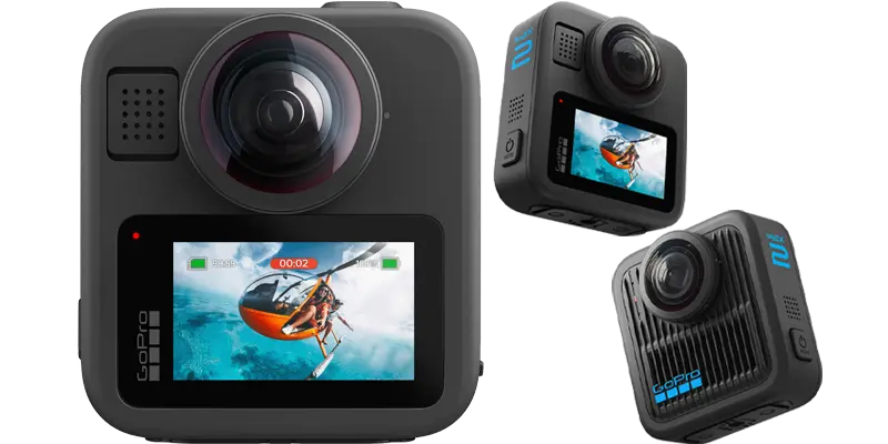 GoPro MAX2は、360°パノラマ撮影と高解像度シングルレンズ撮影を切り替えられる8K対応アクションカメラ。デュアルレンズで8K30 360°動画や29MP写真を撮影でき、シングルレンズでは4K60動画や12MP写真に対応。強化型Enduroバッテリー(1960mAh)で長時間撮影が可能。Wi-Fi 6とBluetooth 5.3による高速転送に対応し、Quikアプリで簡単編集。HyperSmooth手ブレ補正とHorizon Lockで安定した映像を実現。6マイクによる360°サラウンド音声や交換式レンズ、タイムコード同期、音声操作、防水(約5m)など多彩な機能を備えます。