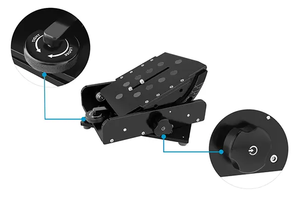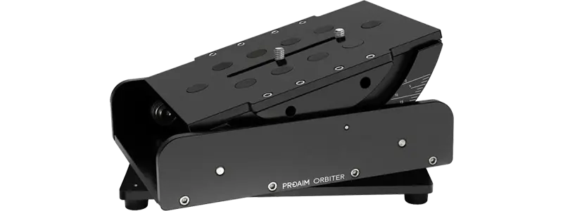 低位置からの独創的なアングル撮影を可能にするOrbiterは、最大85kgまでのカメラに対応する高精度なパン・チルトヘッドです。360°のパン、25°のチルトが可能で、ブレーキ機構により安全なロックオフ撮影にも対応。CNCアルミ製ボディとローラーベアリングが滑らかな動きを実現します。ヘッドに装着すれば真俯瞰やダッチアングル撮影も可能。